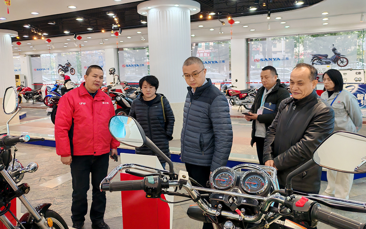 隨后,調研組一行抵達廣州三雅摩托車有限公司,參觀了企業產品展廳,了解三雅摩托各類車型的研發生產情況、產品特色及出口市場布局與份額。據悉,三雅摩托2025年出口額同比增長27%,外貿發展勢頭良好。