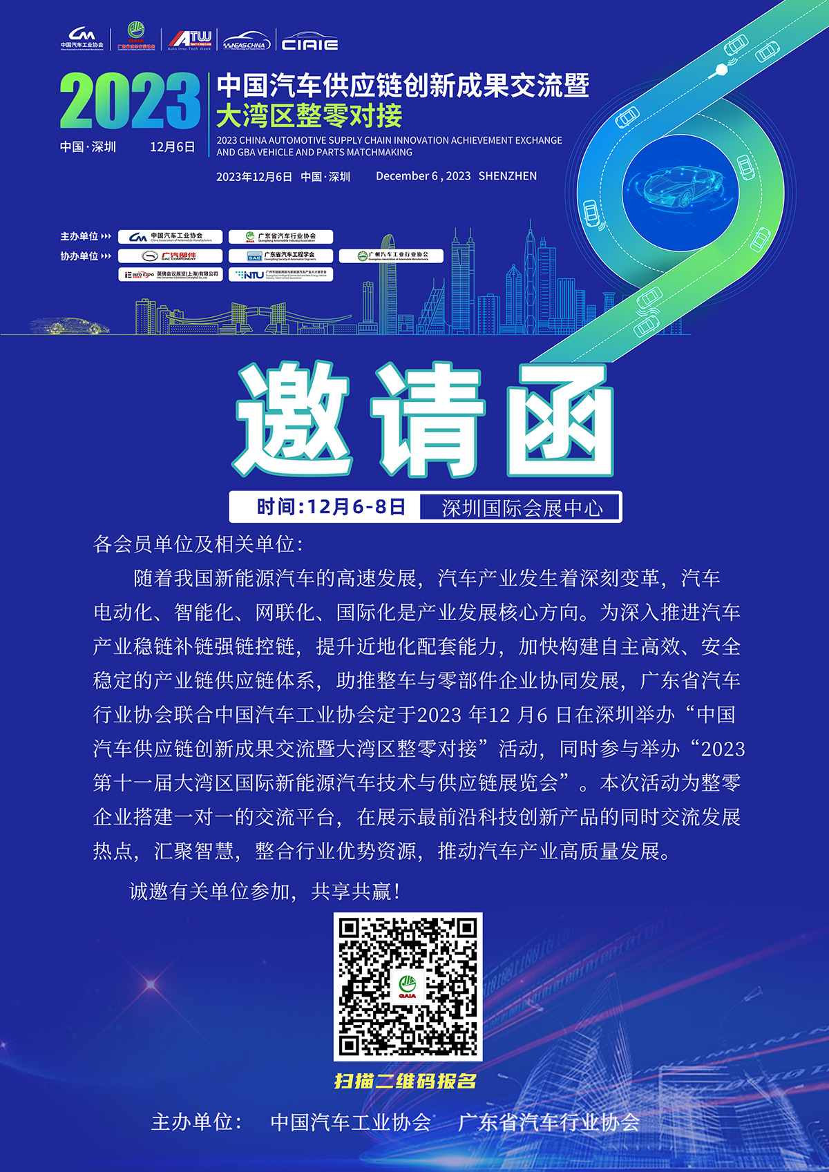 中國汽車供應鏈創新成果交流暨大灣區整零對接邀請函