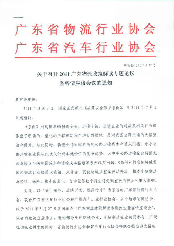 2011廣東物流政策解讀專題論壇暨咨情座談會議