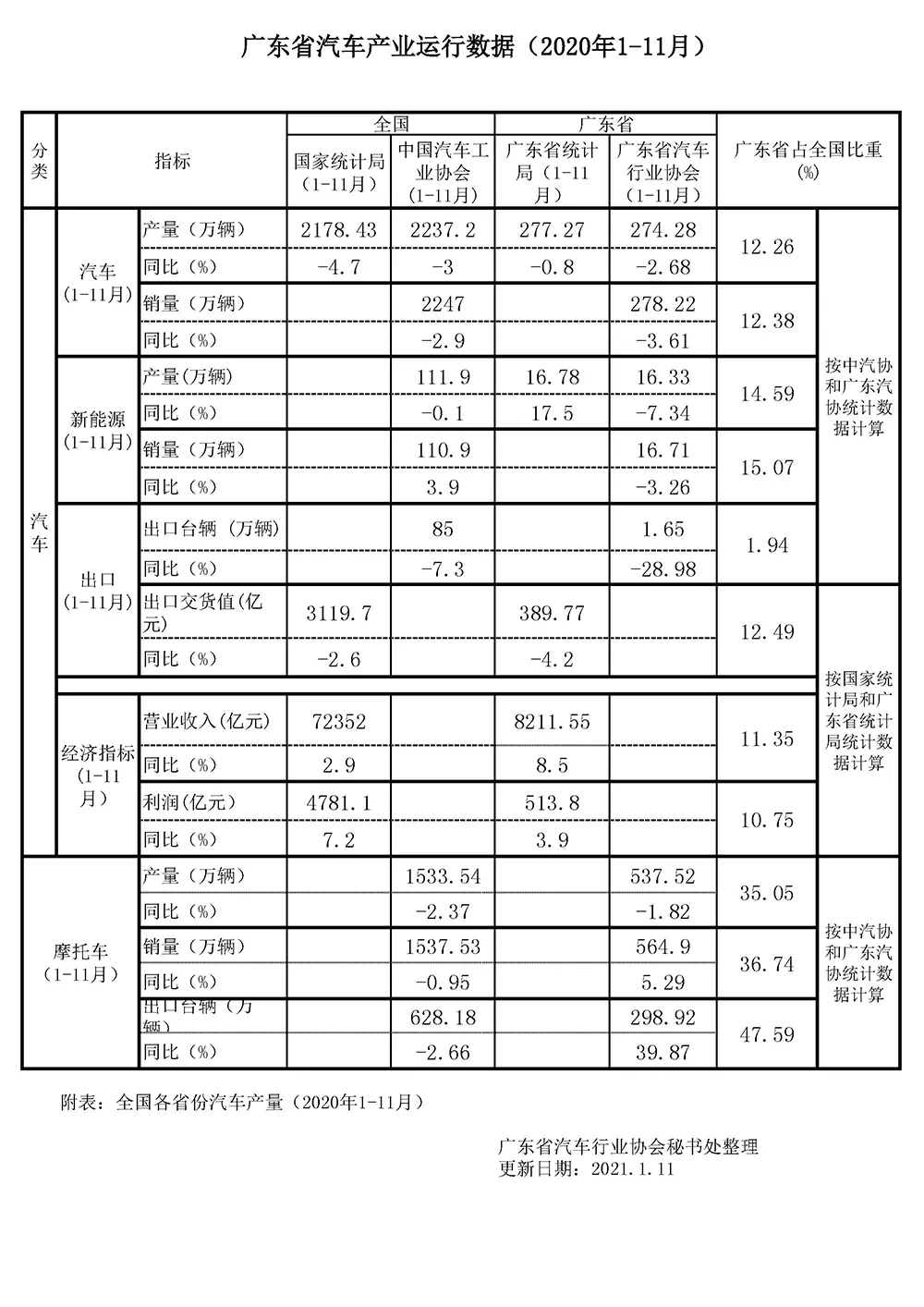 協(xié)會(huì)秘書處計(jì)劃每月定期收集并匯總國(guó)家、廣東省汽車產(chǎn)業(yè)中的相關(guān)運(yùn)行數(shù)據(jù)制表發(fā)出,以供大家參考。
