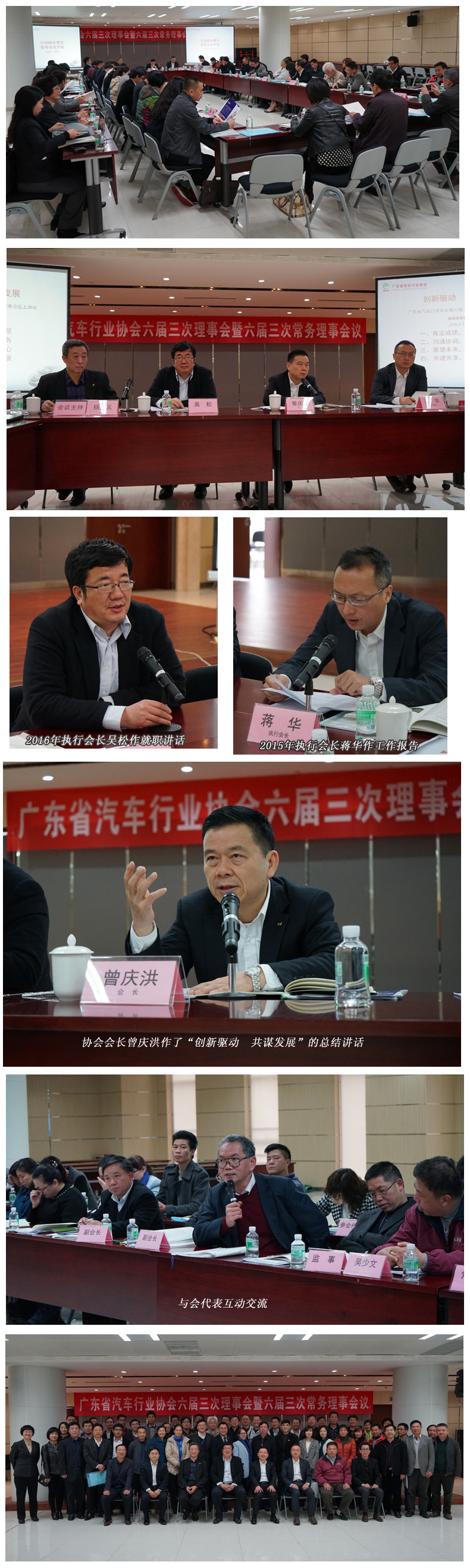 會議審議通過了“關于調整協會人事的議案”,“調整協會第六屆理事會成員單位的議案”等4個議案;通報了“協會會員吸收和退會情況、協會執行會長調整情況”,由廣州汽車集團乘用車有限公司吳松總經理擔任2016年協會執行會長、羅忠寧任協會副秘書長。吳松執行會長作了就職講話。