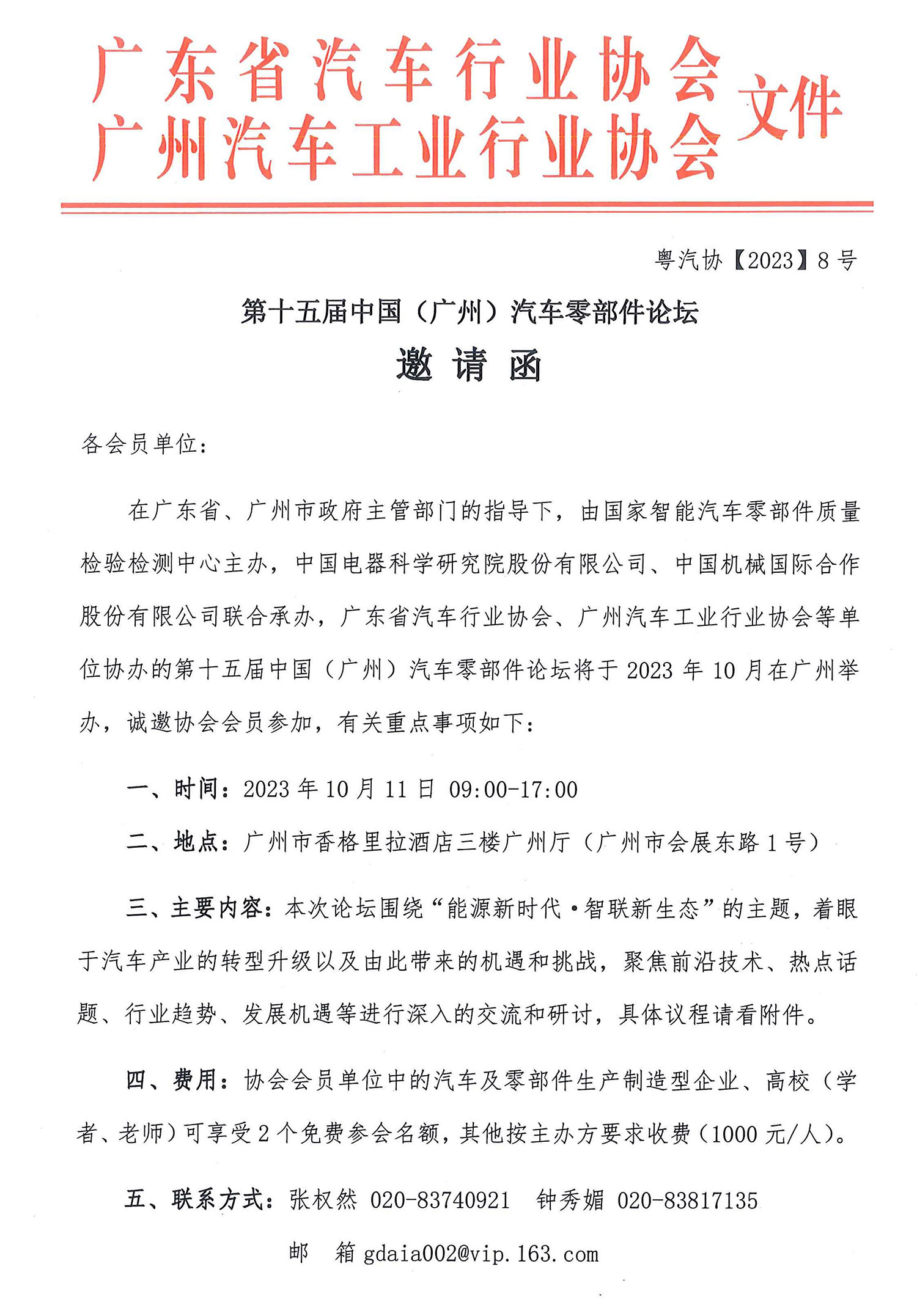 第十五屆中國(廣州)汽車零部件論壇邀請函