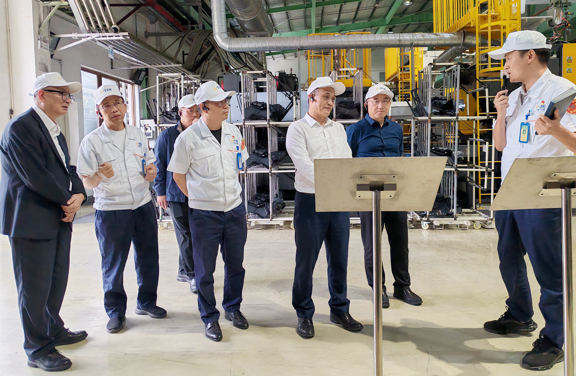 走訪期間,協會一行深入企業生產一線及立體存儲倉庫,實地考察車門內飾板產品的全流程生產工藝與精細化質量管控體系。