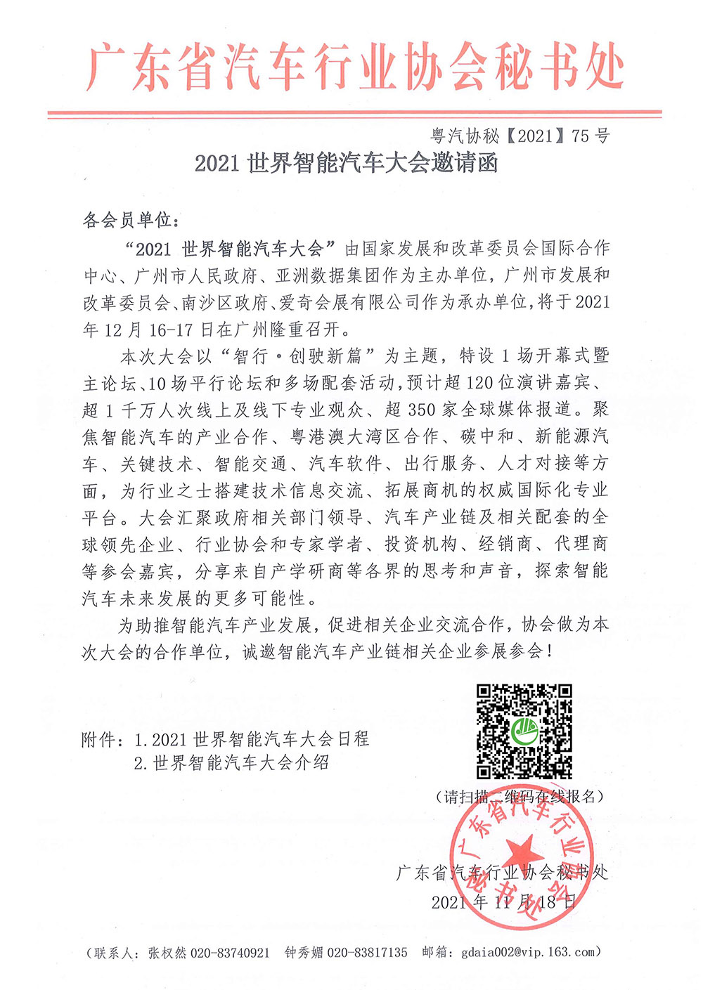 2021世界智能汽車大會邀請函