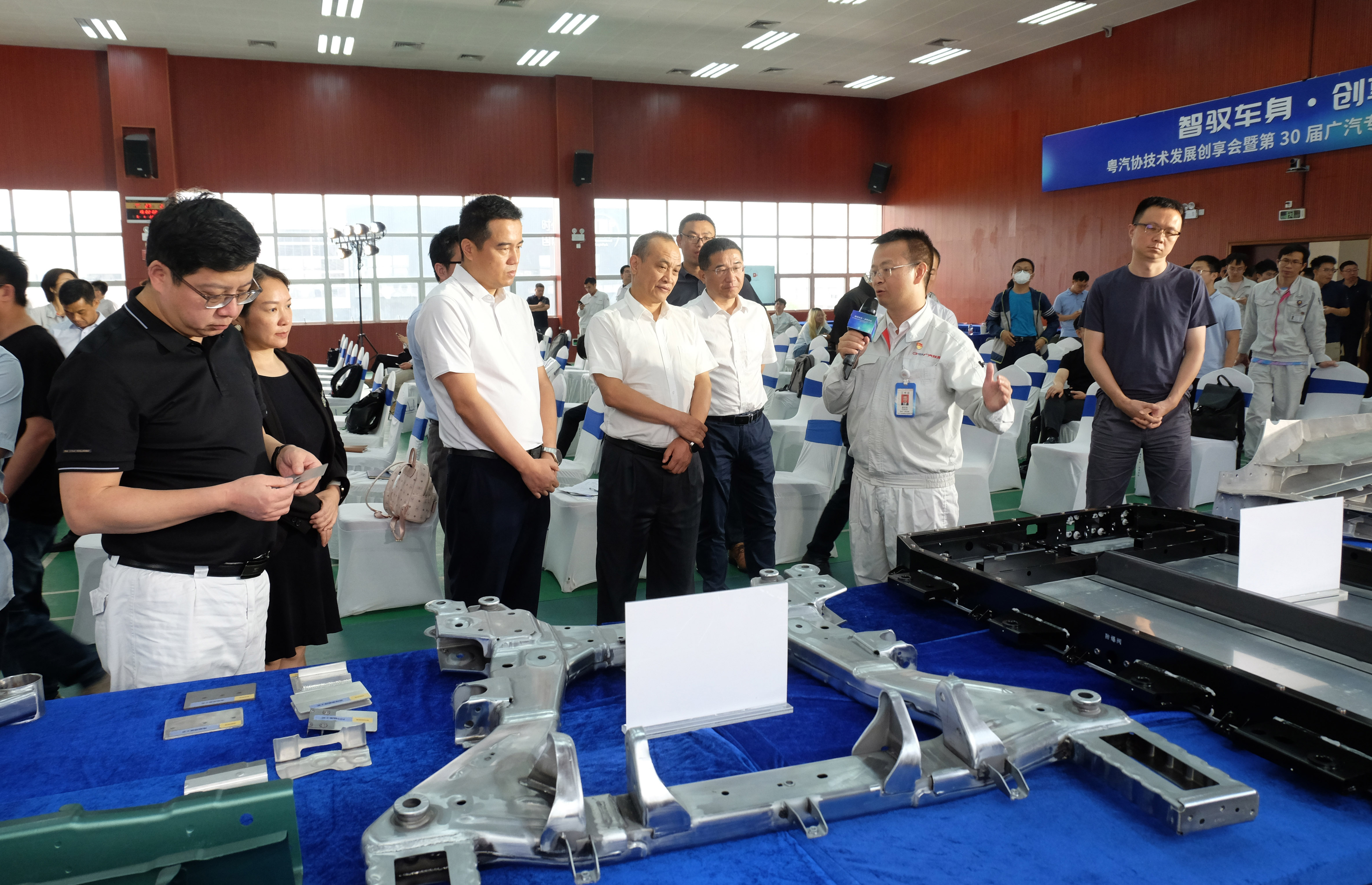 分享結束后,參會人員走進產品展示區,近距離觀摩一體化壓鑄模具、復合材料樣件等實物展品,并與技術人員展開互動交流,進一步深化對前沿技術的理解。