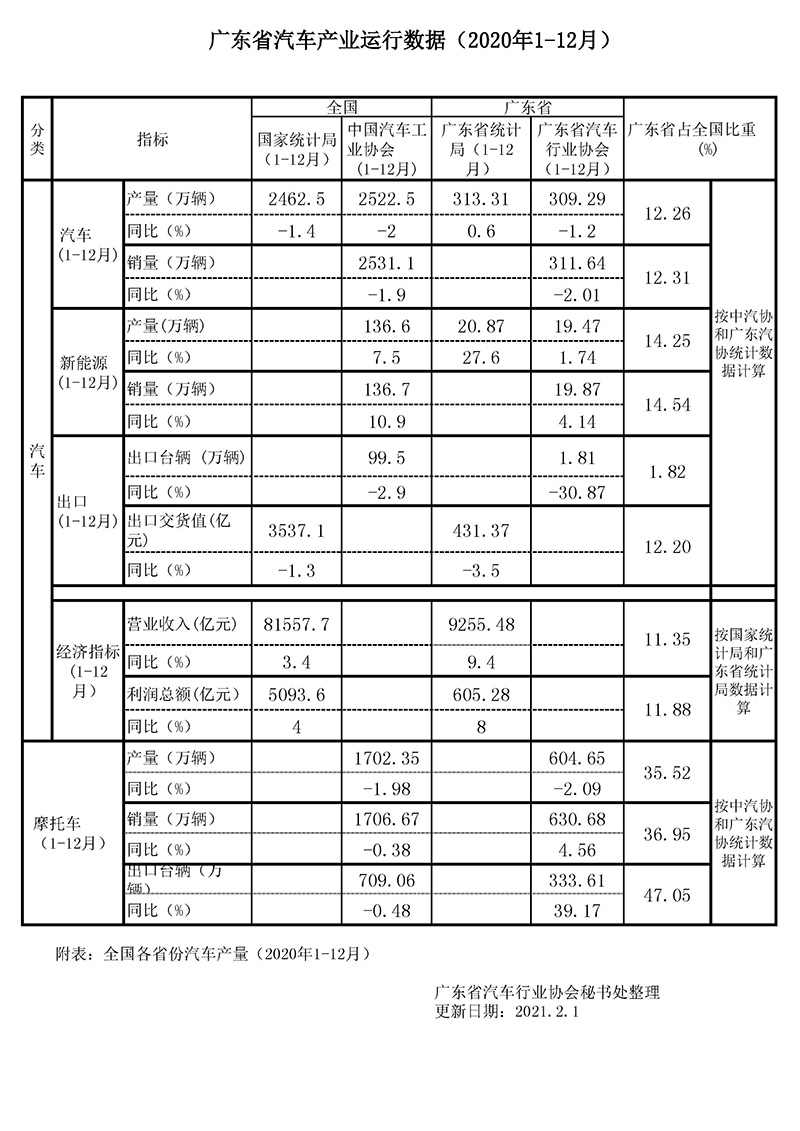 協(xié)會(huì)秘書處每月定期收集并匯總國(guó)家、廣東省汽車產(chǎn)業(yè)中的相關(guān)運(yùn)行數(shù)據(jù)制表發(fā)出,以供大家參考。
