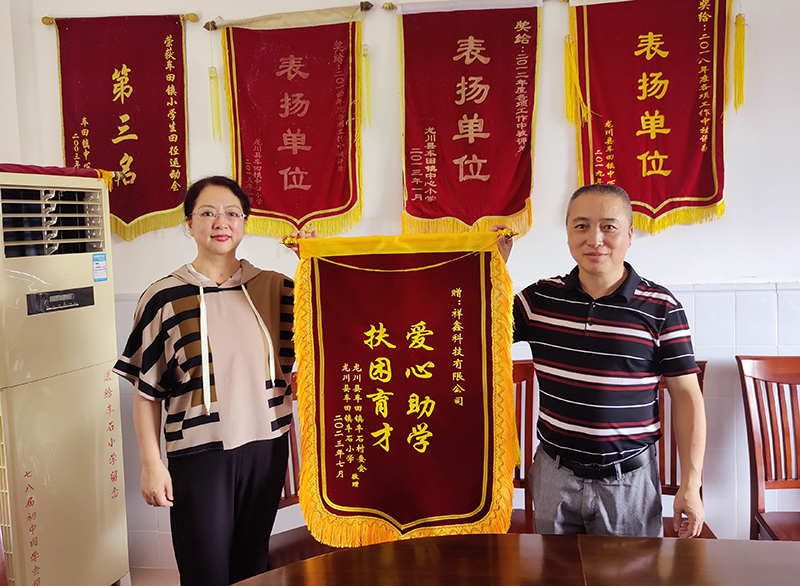 感恩奉獻,與愛同行。2023年7月5日,廣東省汽車行業協會綜合部副部長陳楚珊及助理王曉燕、祥鑫科技股份有限公司總裁辦李秀令到河源市龍川縣車田鎮豐石小學開展捐贈活動,河源市龍川縣車田鎮豐石小學楊立坤校長及全校老師參加了此次活動。