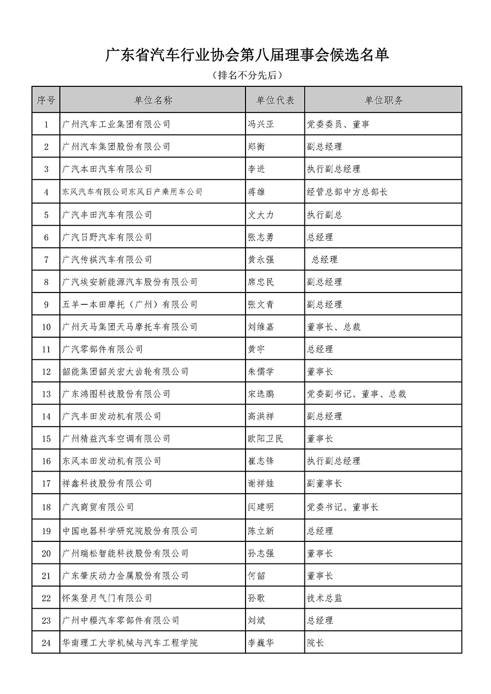 關于廣東省汽車行業協會第八屆理事會、監事會候選名單的公示