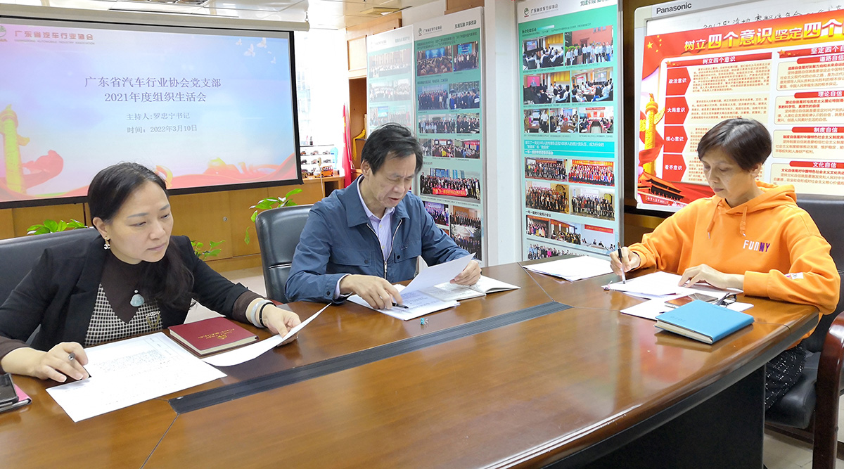 根據中共廣東省社會組織委員會“關于召開2021年度社會組織黨組織組織生活會和開展民主評議黨員工作的通知”精神(粵社黨委[2022]2號),2022年3月10日廣東省汽車行業協會黨支部(以下簡稱協會支部)在協會會議室召開了2021年度支部組織生活會,協會支部全體黨員參加會議。